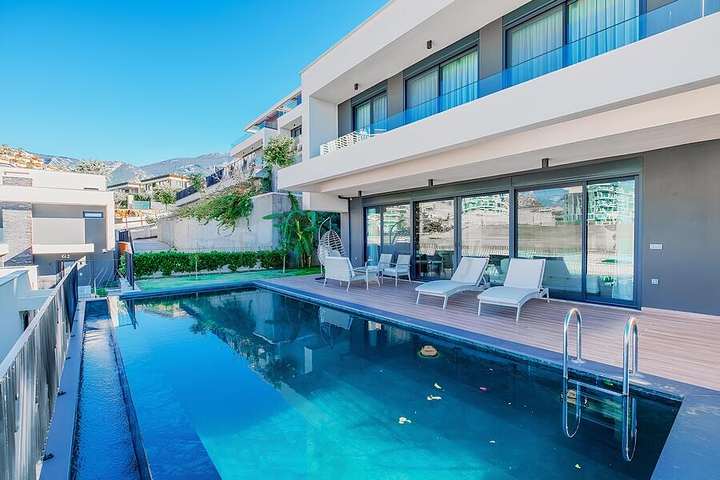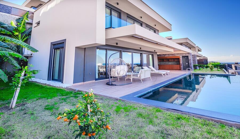 Пропонується до продажу сучасна вілла планування 3 + 1, розташована на доглянутій території житлового проекту, введеного в експлуатацію в 2022 році. Загальна площа вілли становить 187 м2, планування продумана для комфортного проживання сім'ї та прийому гостей.